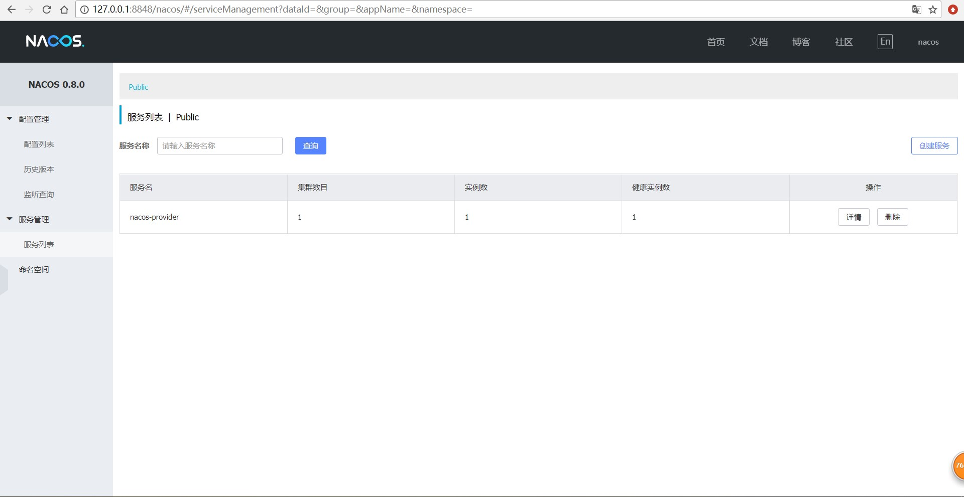 5)启动nacos-provider,可以看到nacos服务列表多了一个服务