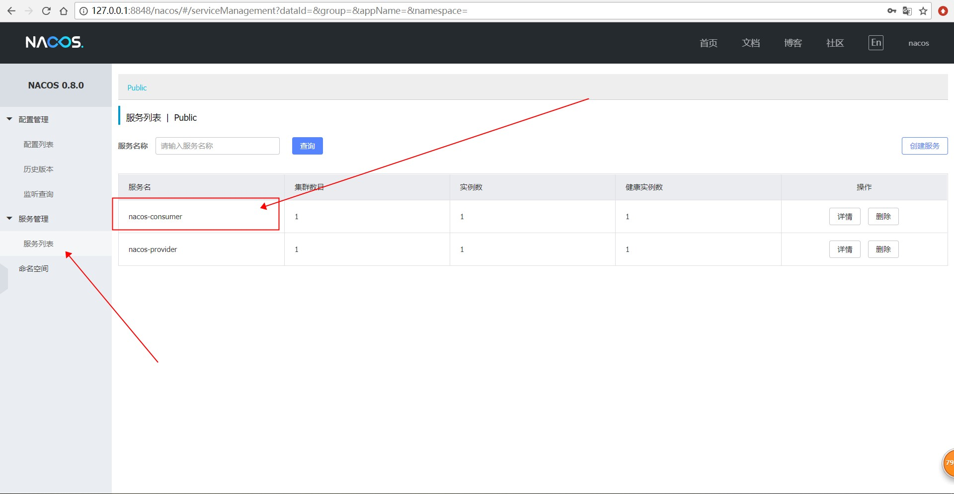 6)启动consumer消费者,可以看到nacos服务列表又多了一个服务