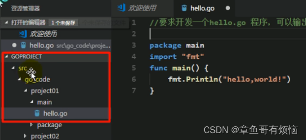 2)package main,表示hello.go文件所在的包是main,在go中每个文件必须归属一个包