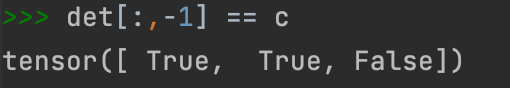 det[ : ,-1]是什么意思,看好像操作之后值都变了,虽然变成Tensor(3,),这里-1的理解是这段代码的关键unique()函数是去掉张量中重复的部分