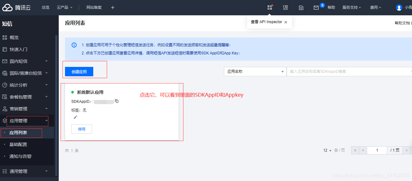 SDK在这:系统会默认给出一个应用,当然,您也可以自己创建一个应用。