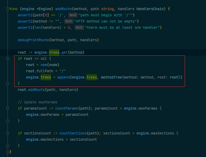 对于node的添加和查找我就不展开讲了,如果不懂的可以自行搜索字典树和查看 httprouter 的实现。