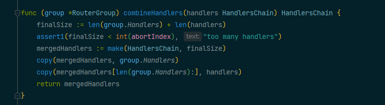 在RouterGroup中Handlers存放的是当前分组的所有中间件,也可以说:请求到这个分组,那么Handlers 中的函数都会根据索引从小到大的按顺序执行。