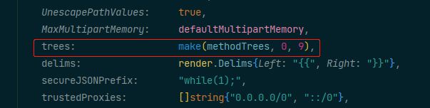 我们刚刚在gin.New 函数中可以看到,trees是一个methodTree的切片,并在在初始化给了默认容量为9,是容量不是长度哦。