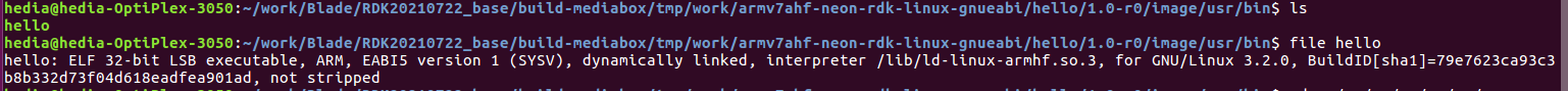 首先把 ubuntu 中 bitbake hello 的运行生存物 hello (在 usr/bin 下)cp 到 U盘中: