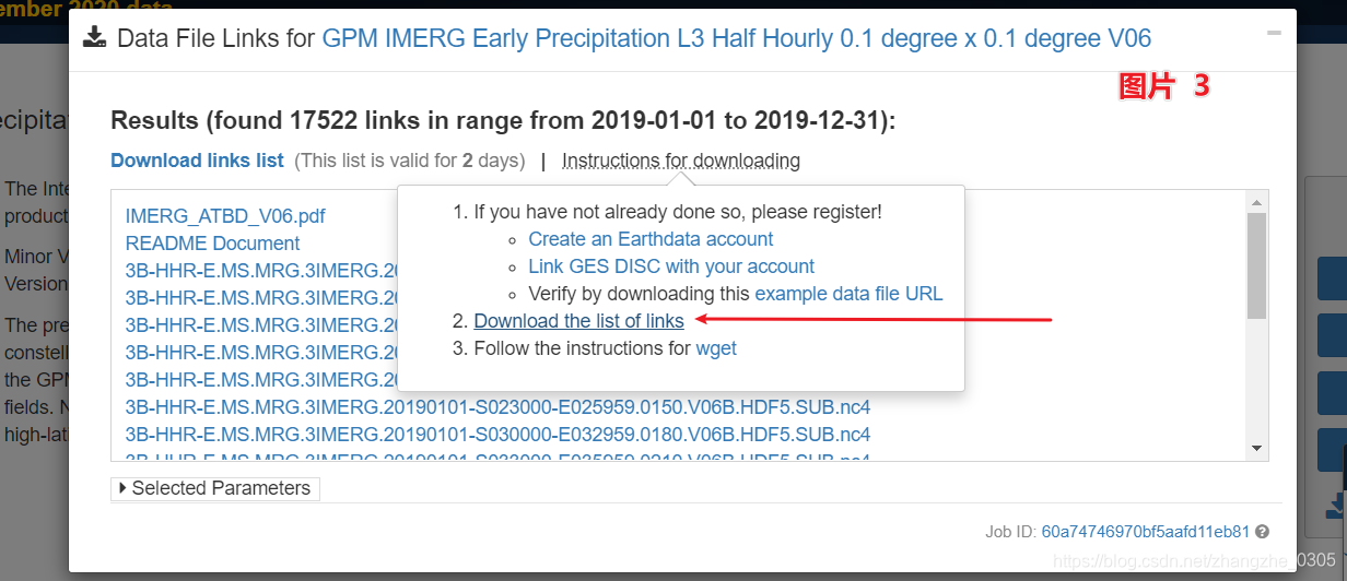 1. 手动下载 list of links。选择你要下载的数据时间范围、区域、等等,然后下载包含所有下载连接的 txt 文件。