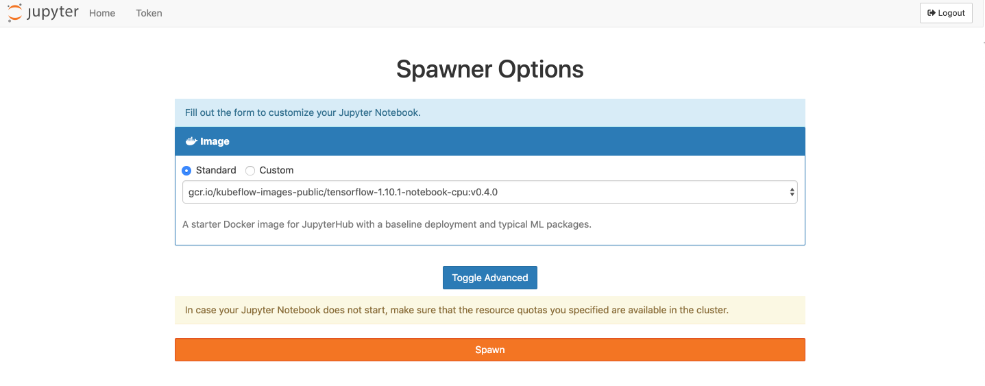 这次看起来蛮好,但是pod仍然是pending,查了查原因,居然说”jovyan”这个用户没有权限!jovyan是个什么鬼,赶紧查了查,在Spawn前的高级选线中发现了玄机: