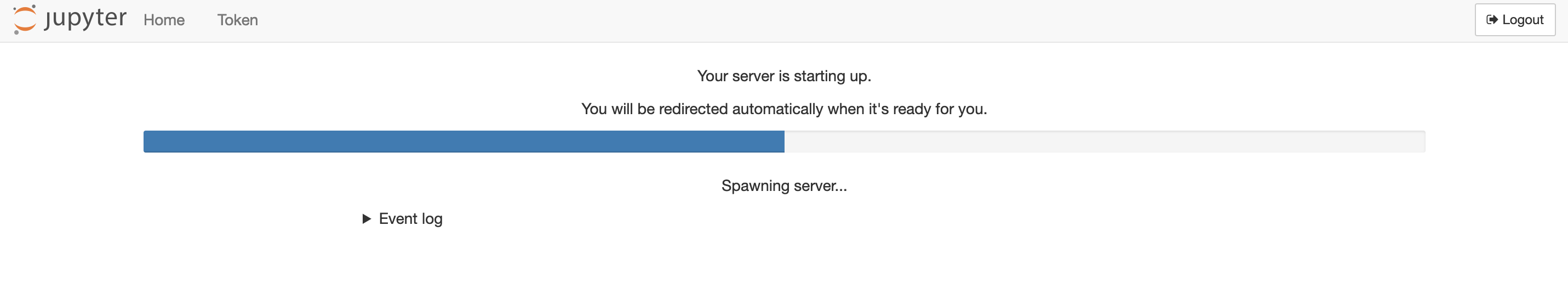 看起来是要求Spawn一个盖用户自己使用的Server,事实上也是如此, 会在k8s中新建一个名为jupyter-${username}的pod。