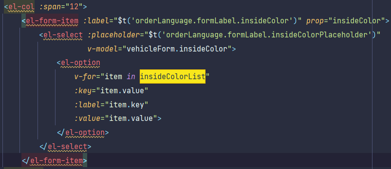 v-for----------对insideColorList列表数据动态渲染遍历