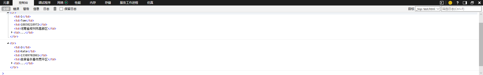 可以看到,输出了thead后的所有tr及其包含的元素。