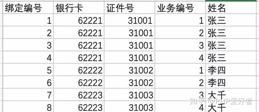 在我们的项目中,range分区和list分区没有使用场景,如果基于绑定编号做range或者list分区,绑定编号没有实际的业务含义,无法通过它进行查询,因此,我们就剩下 HASH 分区和 KEY 分区了,HASH分区仅支持int类型列的分区,且是其中的一列。 KEY 分区倒是可以支持多列,但也要求其中的一列必须是int类型;看我们的库表结构,发现没有哪一列是int类型的,如何做分区呢?增加一列,绑定时间列,将此列设置为int类型,然后按照绑定时间进行分区,将每一天绑定的用户分到同一个区里面去。 这次优化之后,我们的插入快了许多,但是查询依然很慢,为什么? 因为在做查询的时候,我们也只是根据银行卡或者证件号进行查询,并没有根据时间查询,相当于每次查询,mysql都会将所有的分区表查询一遍。 进行第二次方案优化,既然 HASH 分区和 KEY分区要求其中的一列必须是int类型的,那么创造出一个int类型的列出来分区是否可以? 分析发现,银行卡的那串数字有秘密。银行卡一般是16位到19位不等的数字串,我们取其中的某一位拿出来作为表分区是否可行呢,通过分析发现,在这串数字中,其中确实有一位是0到9随机生成的,我们基于银行卡号+随机位进行KEY分区,每次查询的时候,通过计算截取出这位随机位数字,再加上卡号,联合查询,达到了分区查询的目的,需要说明的是,分区后,建立的索引,也必须是分区列,否则Mysql还是会在所有的分区表中查询数据。 通过银行卡号查询绑定关系的问题解决了,那么证件号呢,如何通过证件号来查询绑定关系。 前面已经讲过,做索引一定是要在分区健上进行,否则会引起全表扫描。我们再创建了一张新表,保存客户的证件号绑定关系,每位客户的证件号都是唯一的,新的证件号绑定关系表里,证件号作为了主键,那么如何来计算这个分区健呢,客户的证件信息比较庞杂,有身份证号,港澳台通行证,机动车驾驶证等等,如何在无序的证件号里找到分区健。 为了解决这个问题,我们将证件号绑定关系表一分为二,其中的一张表专用于保存身份证类型的证件号,另一张表则保存其他证件类型的证件号,在身份证类型的证件绑定关系表中,我们将身份证号中的月数拆分出来作为了分区健,将同一个月出生的客户证件号保存在同一个区,这样分成了12个区,其他证件类型的证件号,数据量不超过10万,就没有必要进行分区了。 这样每次查询时,首先通过证件类型确定要去查询哪张表,再计算分区健进行查询。作了分区设计之后,保存2000万用户数据时银行卡表的数据保存文件就分成了10个小文件,证件表的数据保存文件分成了12个小文件,解决了这两个查询的问题,还剩下一个问题:业务编号怎么办?一个客户有多个签约业务,如何进行保存?这时候,采用分区的方案就不太合适了,它需要用到分表的方案。