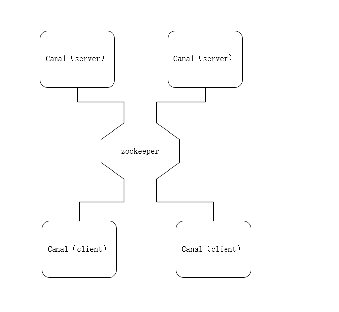 目前canal的一个instance客户端是一 一对应的关系,那么想要保证程序的高可用就要实现集群模式,如下图