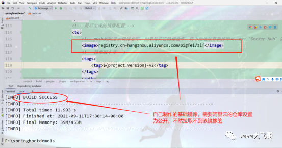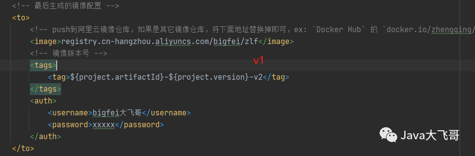 <!-- push到阿里云镜像仓库,如果是其它镜像仓库,将下面地址替换掉即可,ex: `Docker Hub` 的 `docker.io/zhengqing/xxx` -->