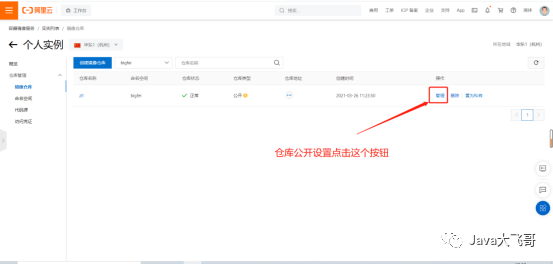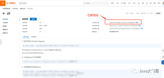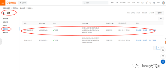 </plugin>4.开通自己的阿里云镜像仓库信息如下: