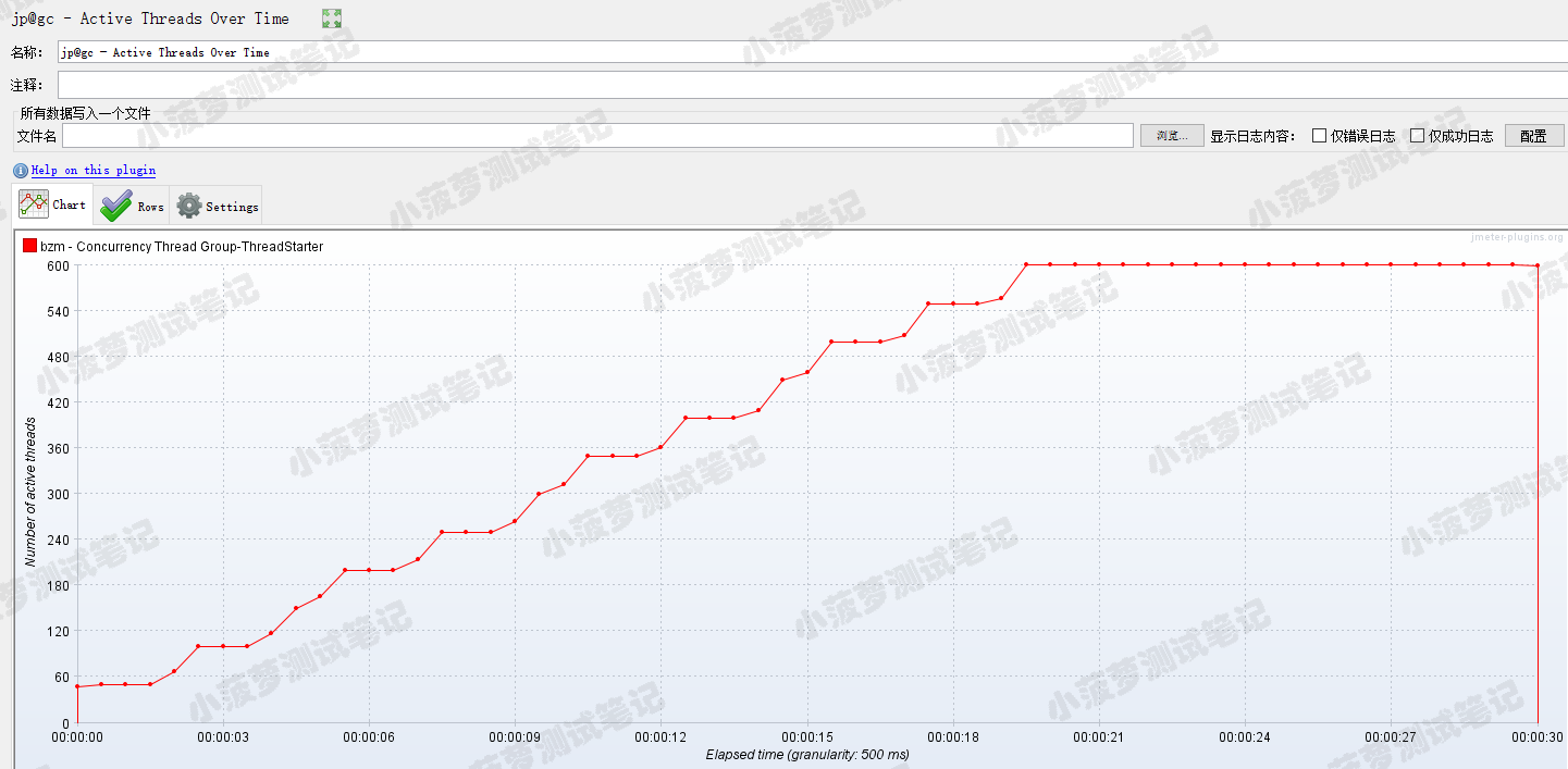 看Concurrency Thread Group负载预览图每次阶梯增压都是瞬时增压的,但是实际测试结果可以看到它也是有一个过渡期,并不是瞬时增压