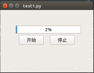 该界面包含了一个进度条、一个开始按钮、一个停止按钮。当点击“开始”按钮之后,进度条会开始运行;当点击“停止”按钮时,进度条会停止运行,如下所示: