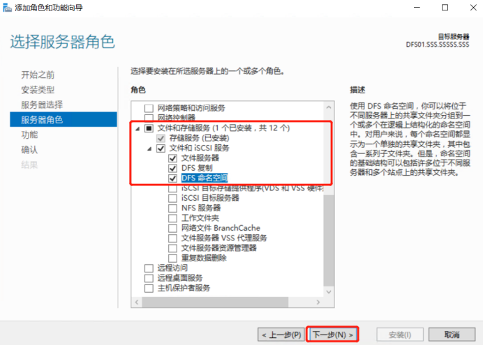 4.在两台DFS服务器上安装DFS相关功能