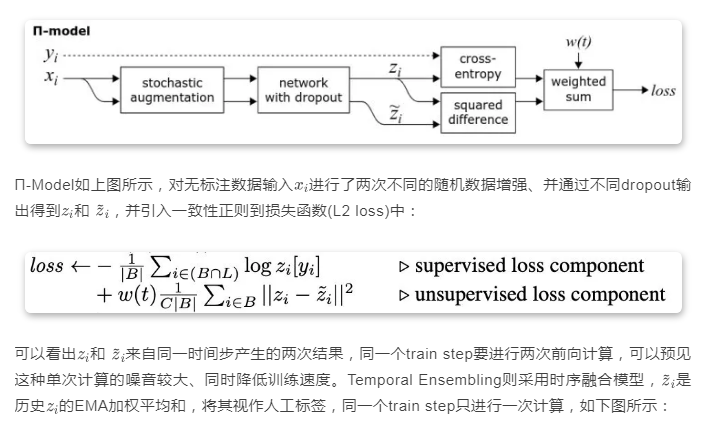 Π-Model 和 Temporal Ensembling来自同一篇论文,均利用了一致性正则。