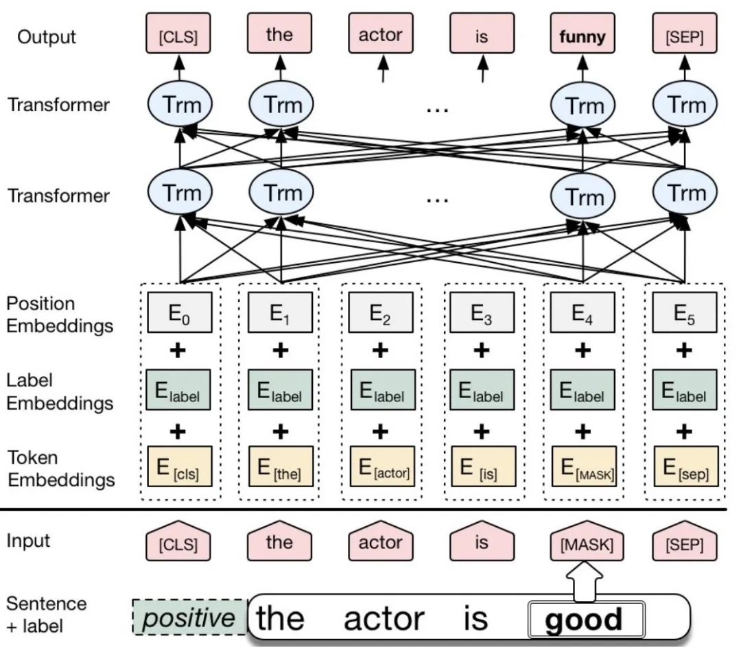 CBERT[13]:其主要思想还是借鉴了Contextual Augment,基于BERT进行finetune,将segment embedding转换融入标签指示的label embedding(如果标签类别数目大于2类,则相应扩充),如下图,替换good生成的funny与标签positive兼容。