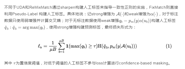 将人工标签与strong增强后的预测标签共同构建一致性正则,并计算损失时进行了confidence-based masking,低于置信度阈值不参与loss计算。