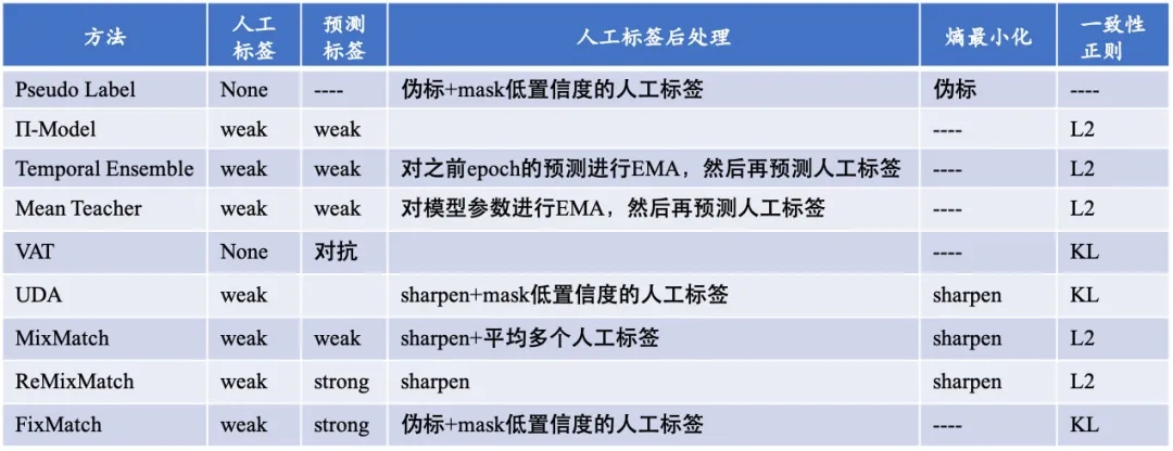 至此,我们已经介绍完了近年来主流的半监督深度学习方法。回顾1.1节对一致性正则公式的介绍,我们可以发现:
