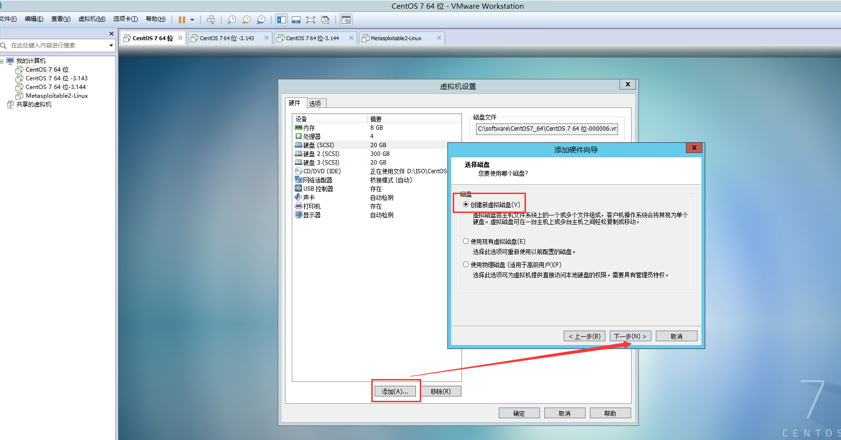 du -h -x --max-depth=13、在虚拟机上添加一块硬盘