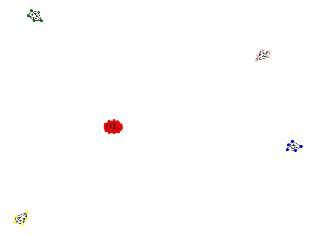 将每个球员当作网络图中一个节点,计算节点之间的连通关系,同属一个俱乐部则连通。