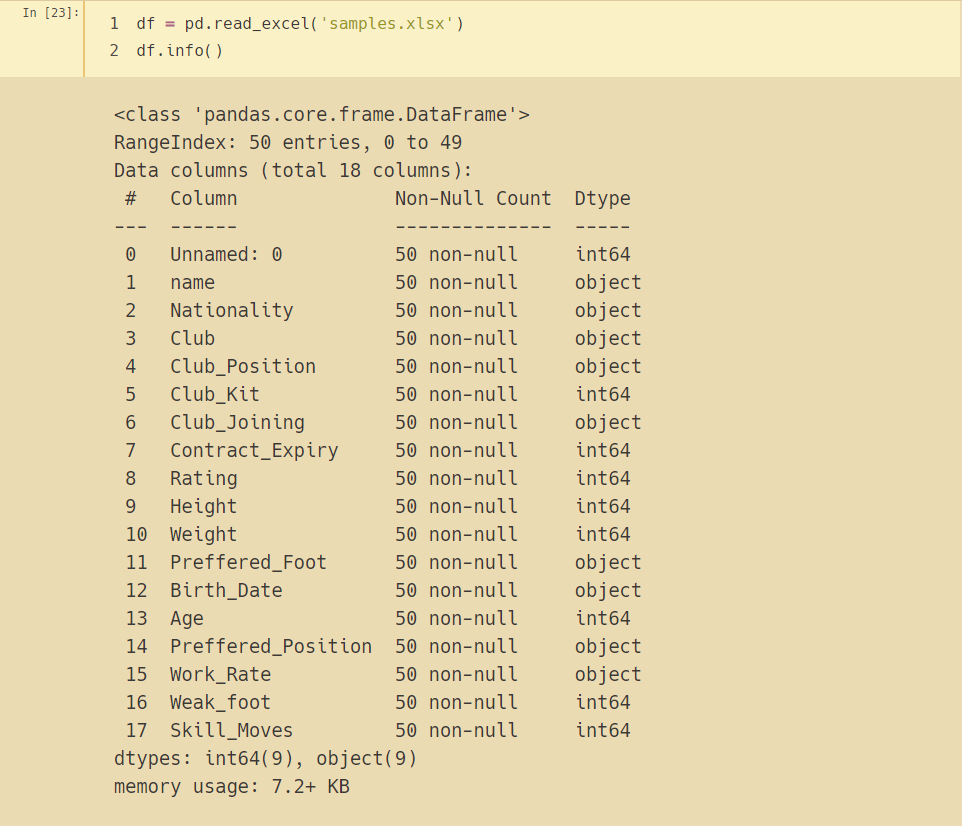 Jupyter Notebook 环境中读取 samples.xlsx,打印其 info(),结果如下: