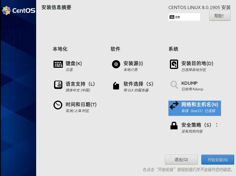 配置网络,选择时区,软件选择里面选择带GUI的服务器,