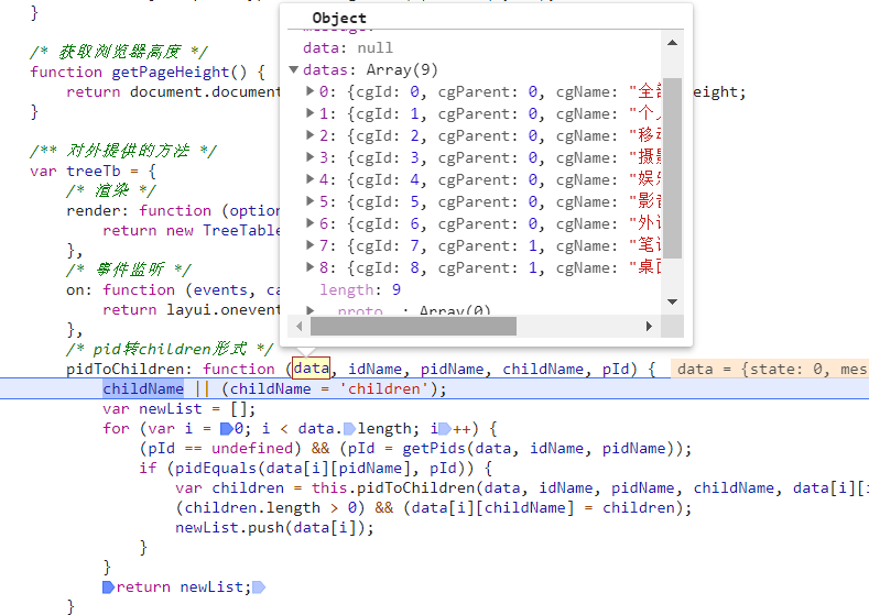 at Object.pidToChildren (treeTable.js:1407)控制台打印出来,我获取到的数据。