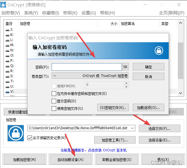 先把文件加载进来,然后点击加载加密卷,然后输入密码,就能把加密卷加载到你的本地。