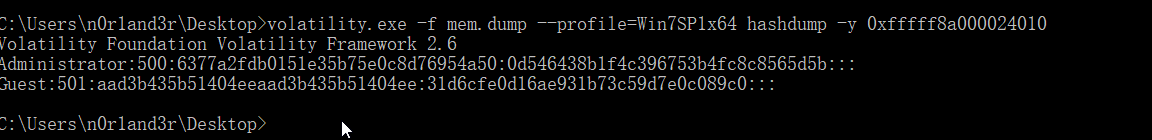 因为需要administrator的密码,所以只需要关注system用户。把此用户的hash显示出来hashdump。