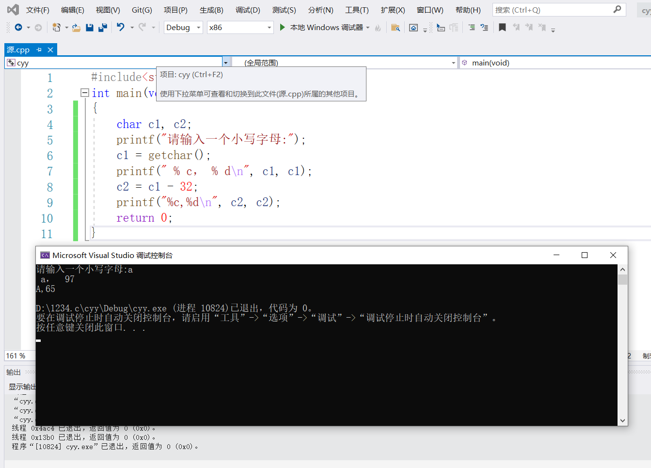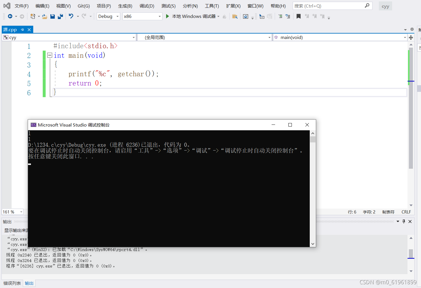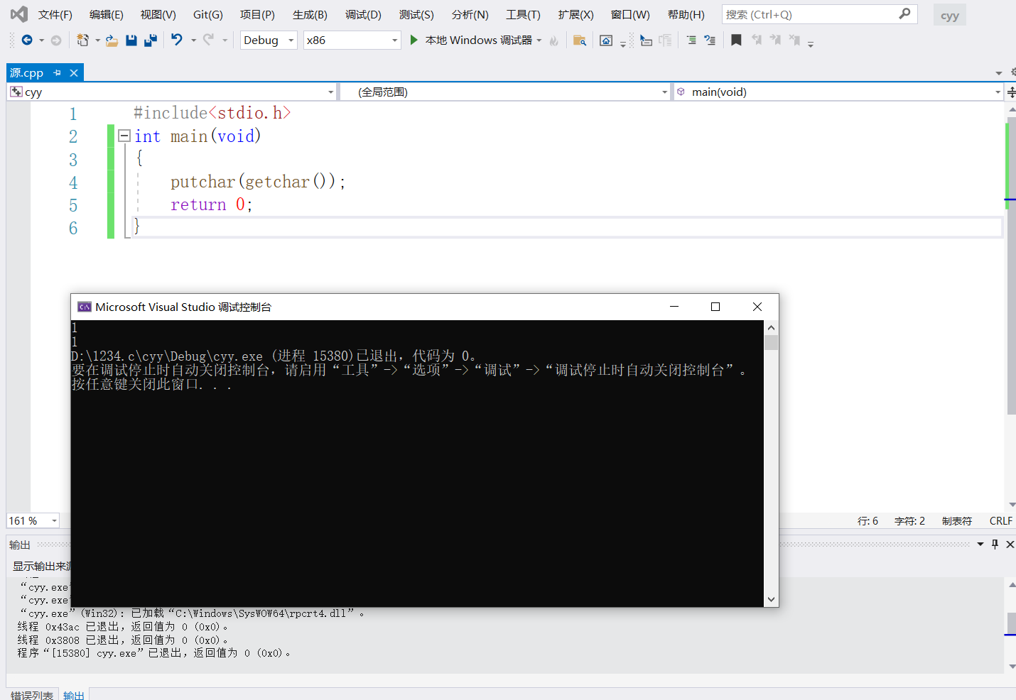 2.使用getchar( )函数和putchar( )函数对字符型数据进行输入输出
