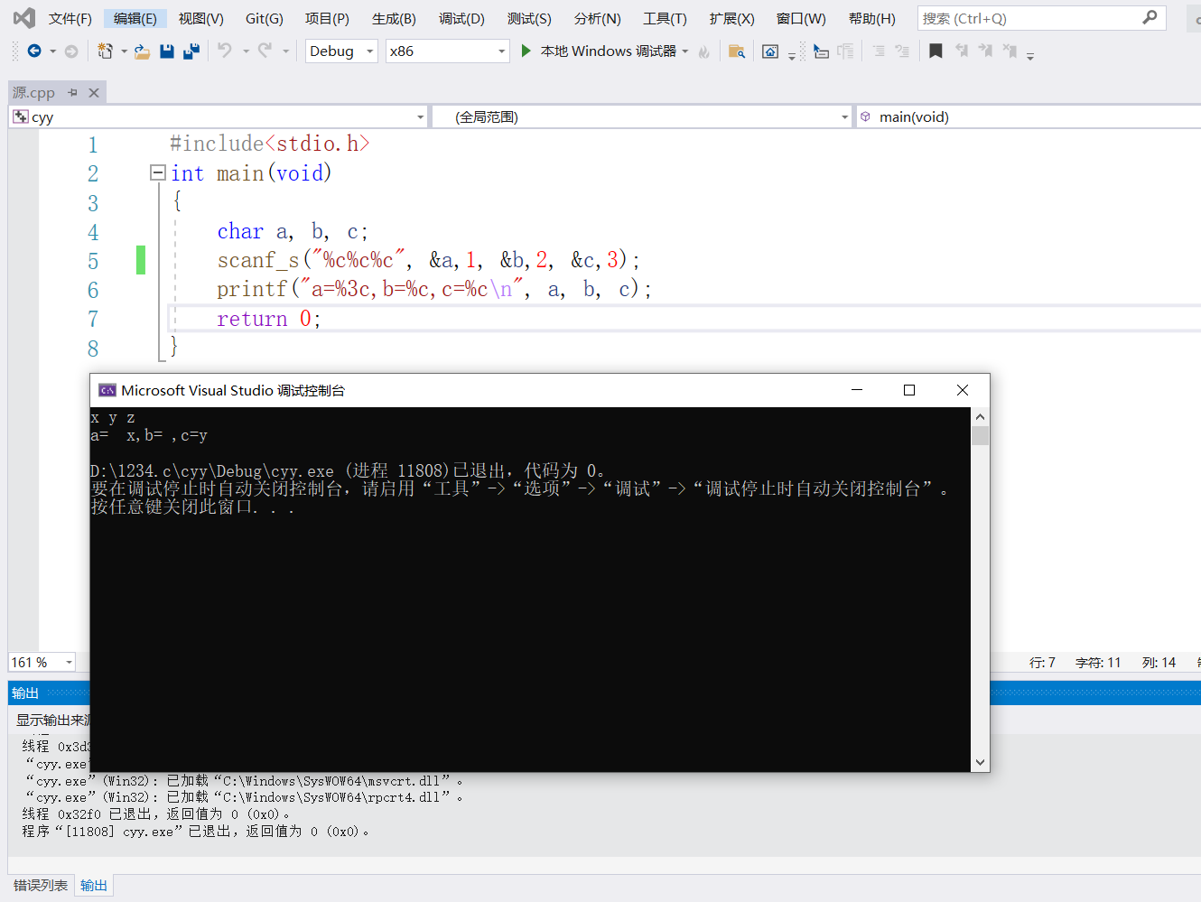 1.使用scanf( )函数和printf( )函数对字符型数据进行输入输出