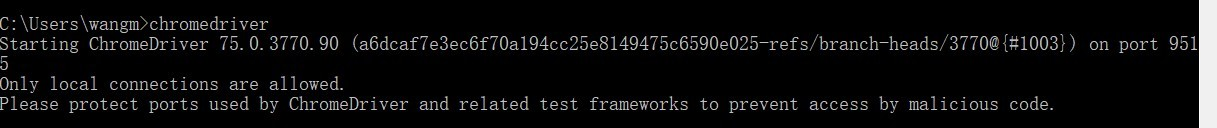 配置完成后,可在终端(命令提示符或cmd)执行chromedriver命令,执行结果如下: