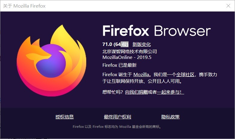 火狐浏览器的驱动使用GeckoDriver驱动,首先确保Firefox浏览器正常运行并确定版本, 通过Firefox菜单“帮助”→“关于Mozilla Firefox”查看版本号,如下: