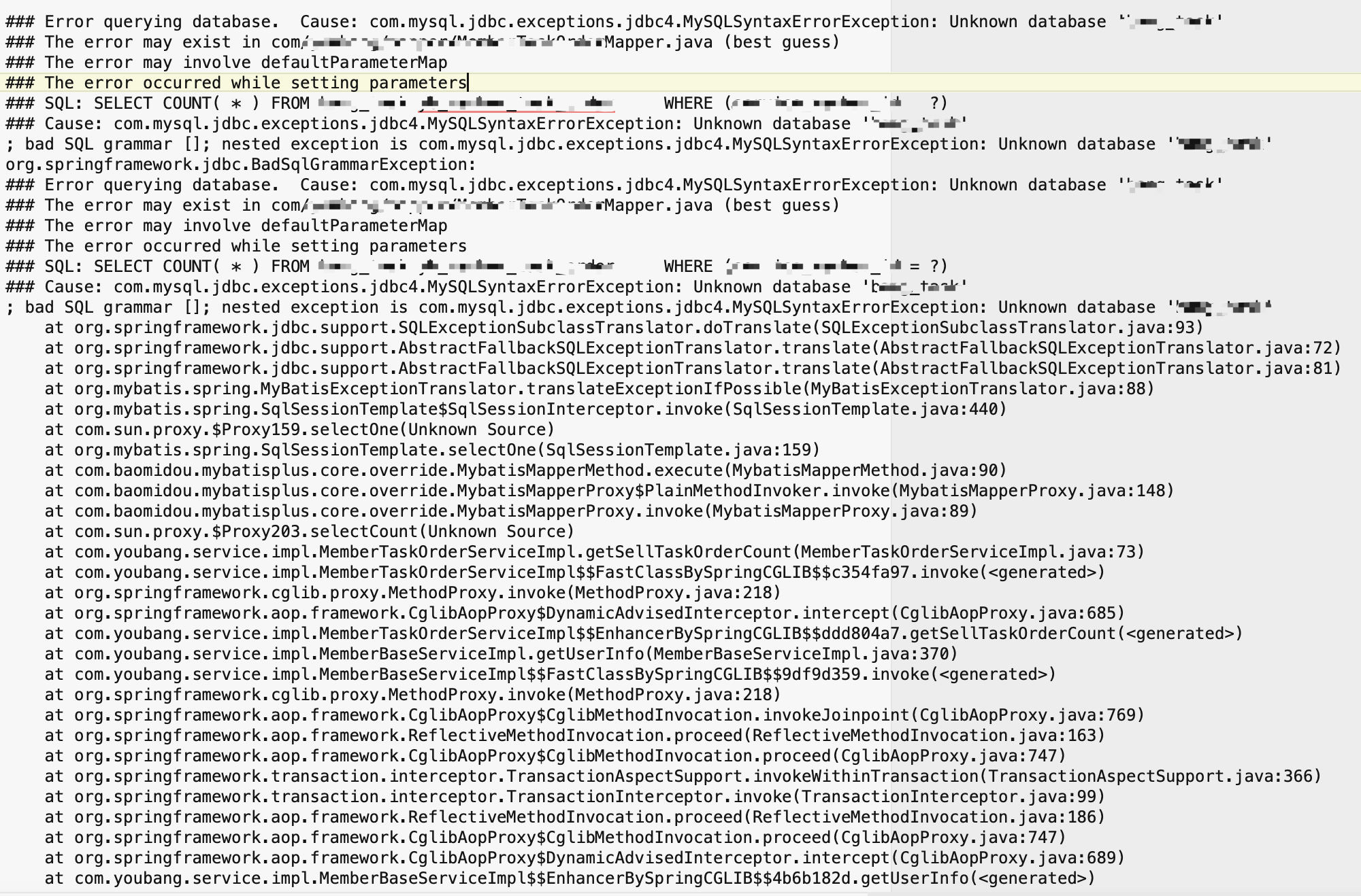 原因:由于在修改了数据库名后,没有进行缓存的清除,也没有对数据进行增删改操作,在查询同一条sql语句时,走了sqlSession的一级缓存,是修改前的数据库名,导致出现unknow database 的出现。