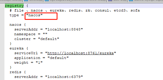 然后修改registry.conf文件,指明用哪种注册工具,如图