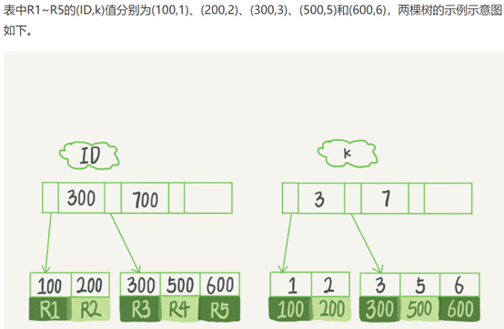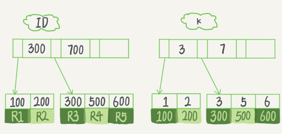 - 如果语句是select * from T where ID=500,即主键查询方式,则只需要搜索ID这棵B+树;