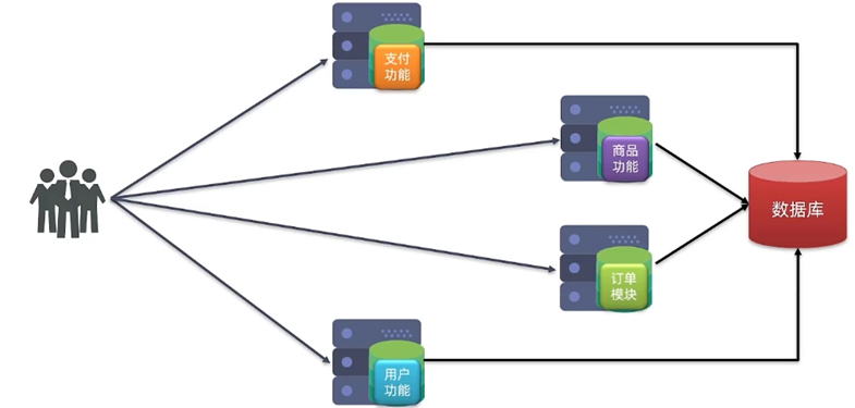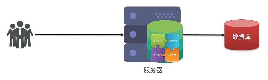概念:将业务的所有功能集中在一个项目中开发,达成一个包部署