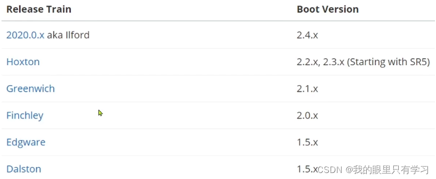 SpringCloud 与 SpringBoot 的兼容关系: