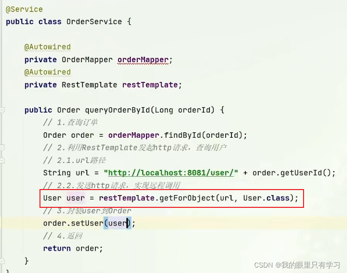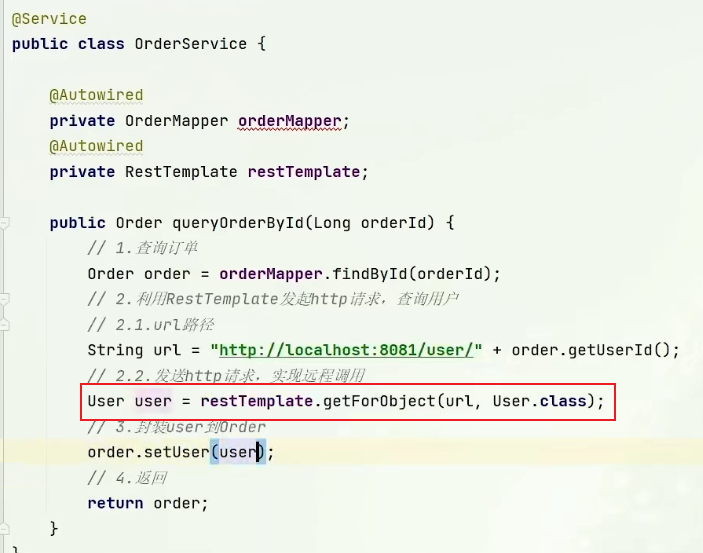 3)解决:订单查询微服务向用户查询微服务发起远程调用——利用 RestTemplate