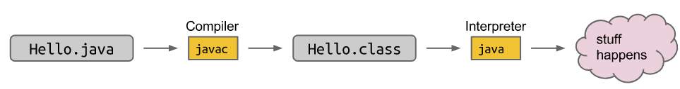 java: is used to execute programs (execution), we must always compile before execution.