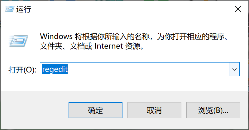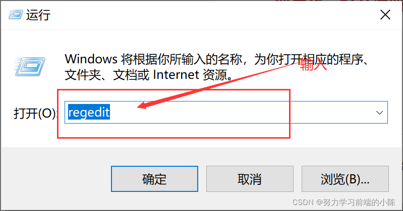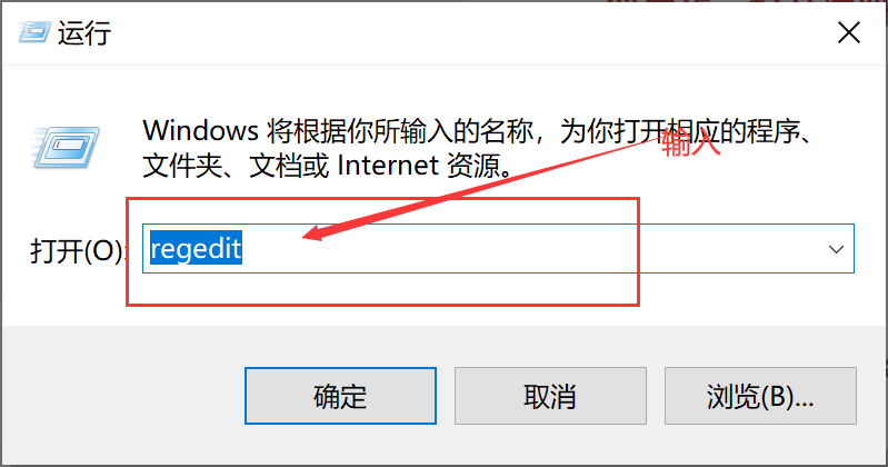 第二步:打开注册表:输入 regedit ,点击“确定”。弹出”注册表编辑器”。