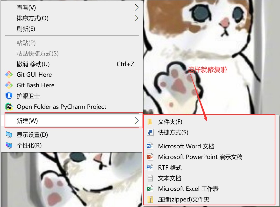 第五步:修改完成后,按F5键刷新注册表,即可在右键菜单中重新看到“新建”了。