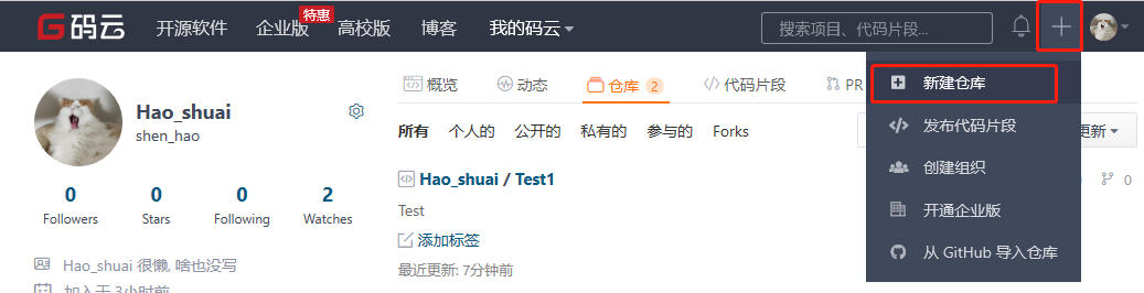 (3)复制git仓库地址,为接下来将项目下载到本地做准备(git clone 地址)