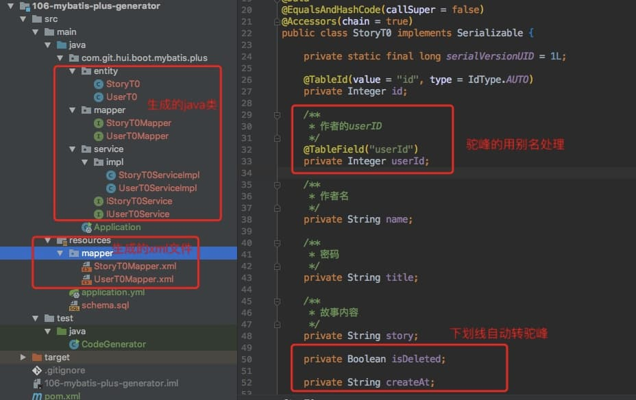 一个简单的实例工程,介绍利用 mybatis-plus 的代码自动生成插件,根据表结构来生成对应的类和 xml 配置文件