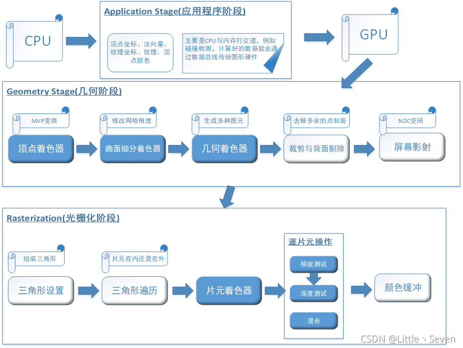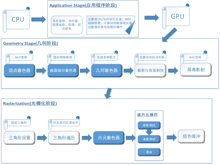 渲染管线分三个阶段
