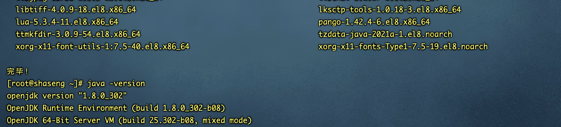 执行命令yum install -y java-1.8.0-openjdk-devel.x86_64。执行完后会看见控制台刷出很多输出。 耐心等待至自动安装完成
