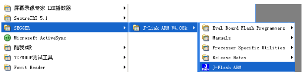 连接好JLink的仿真器到Mini2440开发板并上电,然后在程序菜单中 打开J-Flash ARM工具: